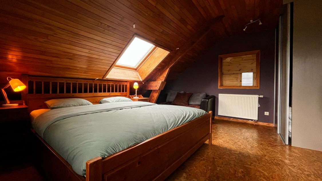• Eco-friendly home (wood, straw, clay) • Located in the Euregio triangle: easy access to Maastricht, Liège, Tongeren & Aachen • Books, toys, magazines, record player • Dogs allowed (max. 2, with rules) • Open living area with kitchen island, dining table & TV lounge • Fully equipped kitchen incl. dishwasher etc. • Terrace with country views • Bike storage & garden with play items • Comfortable stairs to access the loft • Note: Some morning traffic – earplugs provided • For up to 5 guests