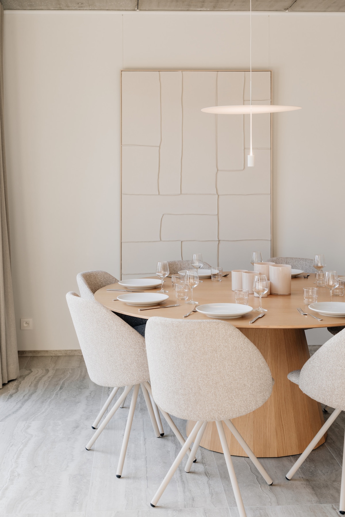 Cette maison à Oupeye offre un cadre lumineux, ouvert sur la Meuse, où chaque détail invite à la respiration. Dans une palette sobre et monochrome, textures et objets singuliers dessinent une élégance discrète. Sans technologie envahissante, l’espace mise sur le confort du silence. À proximité du centre d’affaires Bord de Meuse et du RAVeL, ce lieu est idéal pour travailler au calme et se ressourcer au bord de l’eau.