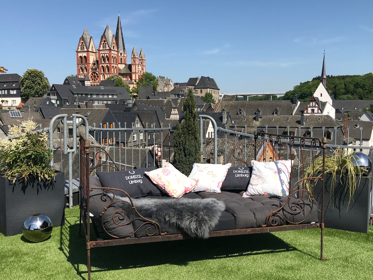 Traumhafte Penthouse Ferienwohnung über den Dächern der Limburger Altstadt mit einer 80 m² großen Dachterrasse inklusive eines 360° Rundumblick. In unserer luxuriösen Ferienwohnung Domizil, mit einem Süd Ost, Balkon und traumhafter Dachterrasse ist Erholung und Entspannung in der Limburger Altstadt garantiert. An der Plötze gelegen, sind zahlreiche Geschäfte und Restaurants, sowie die Lahn bequem und unmittelbar zu Fuß zu erreichen. Aufzug, direkt in die Wohnung, High End Küche, WLAN etc.
