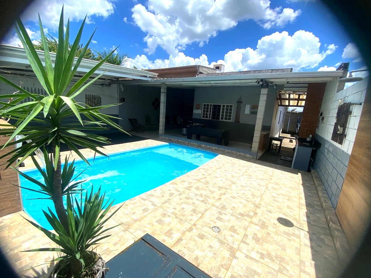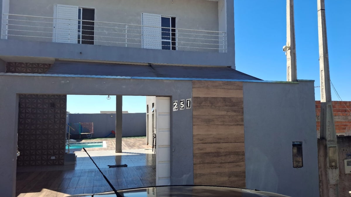 Linda e moderna casa, localizada em um bairro tranquilo, seguro e dentro da cidade Americana, localizada à 131 km de SP. Imagine sua estadia em uma boa localização, com uma bela piscina, e um ótimo espaço para relaxar. É um refúgio perfeito para ir com a família e amigos. Não há grades de proteção na piscina. Casa ampla com churrasqueira, e uma área coberta com ventilador. A parte interna da casa possui 2 quartos, banheiros, sala e cozinha conjugadas. Home Office com 125 megas