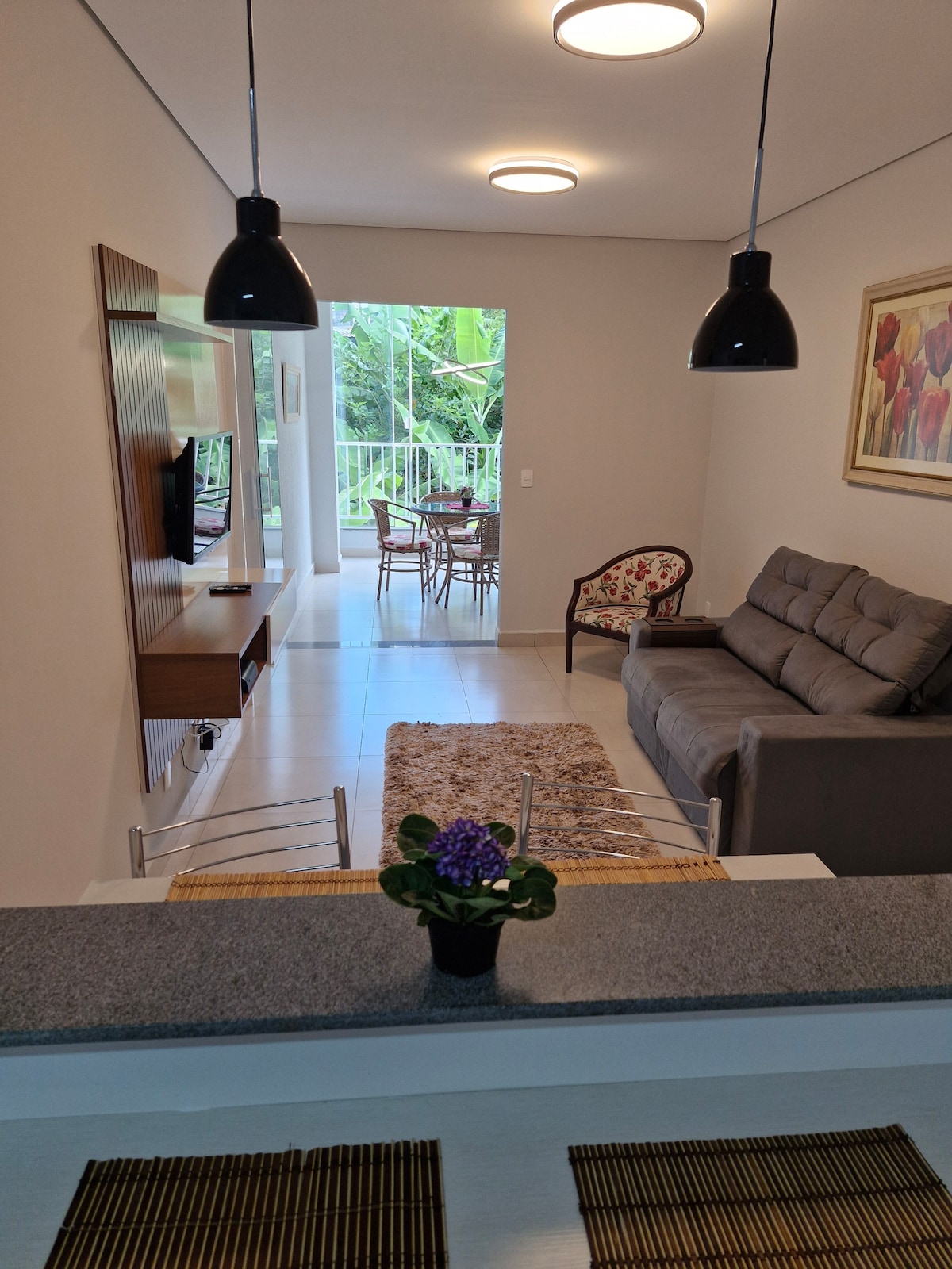 Entire 110 m² apartment, spacious, comfortable and full of personality. It combines the coziness of grandma's house with a contemporary touch. Panoramic view of the basilica. Spacious rooms, ideal for families, couples or groups seeking comfort, charm and a sense of home. Quiet and relaxing. Furnished with all amenities, covered parking and right in the city center, close to markets, banks, restaurants and shops. Smart TV with Telecine/HBO Netflix and Globoplay. Washer and dryer.