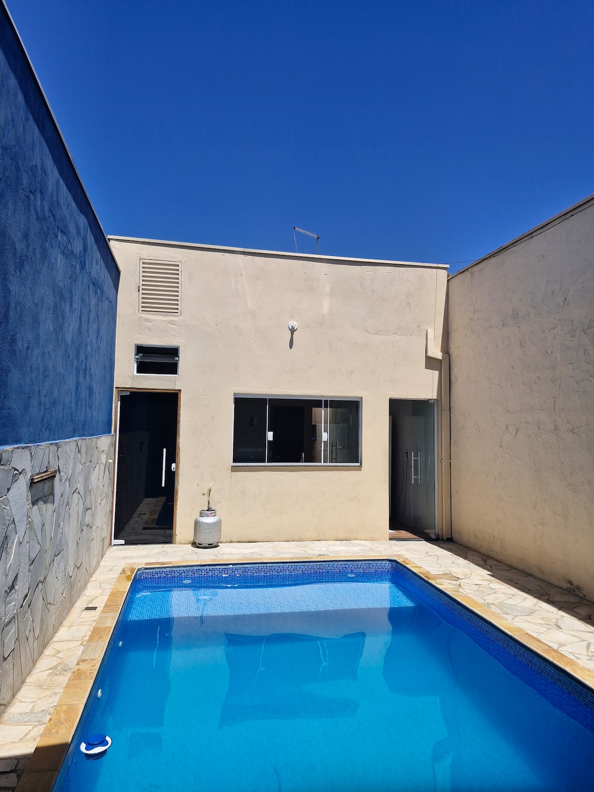Linda e moderna casa, localizada em um bairro tranquilo, seguro e dentro da cidade Americana, localizada à 131 km de SP. Imagine sua estadia em uma boa localização, com uma bela piscina, e um ótimo espaço para relaxar. É um refúgio perfeito para ir com a família e amigos. Não há grades de proteção na piscina. Casa ampla com churrasqueira, e uma área coberta com ventilador. A parte interna da casa possui 2 quartos, banheiros, sala e cozinha conjugadas. Home Office com 125 megas