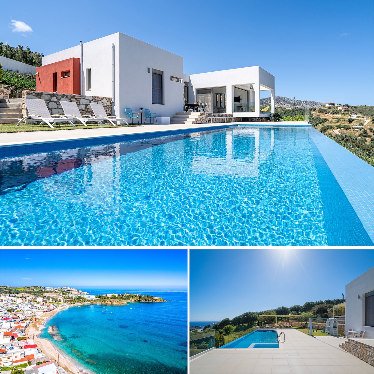Orama Villa, is a unique brand new 330m² luxury residence in the hills of Piskopiano Village. The villa can accommodate up to 8 people. The panoramic views of Ηersonissos harbor, the Cretan sea and the hills of Koutouloufari and Piskopiano Village are some of the images that will stay with you for a long time to come.