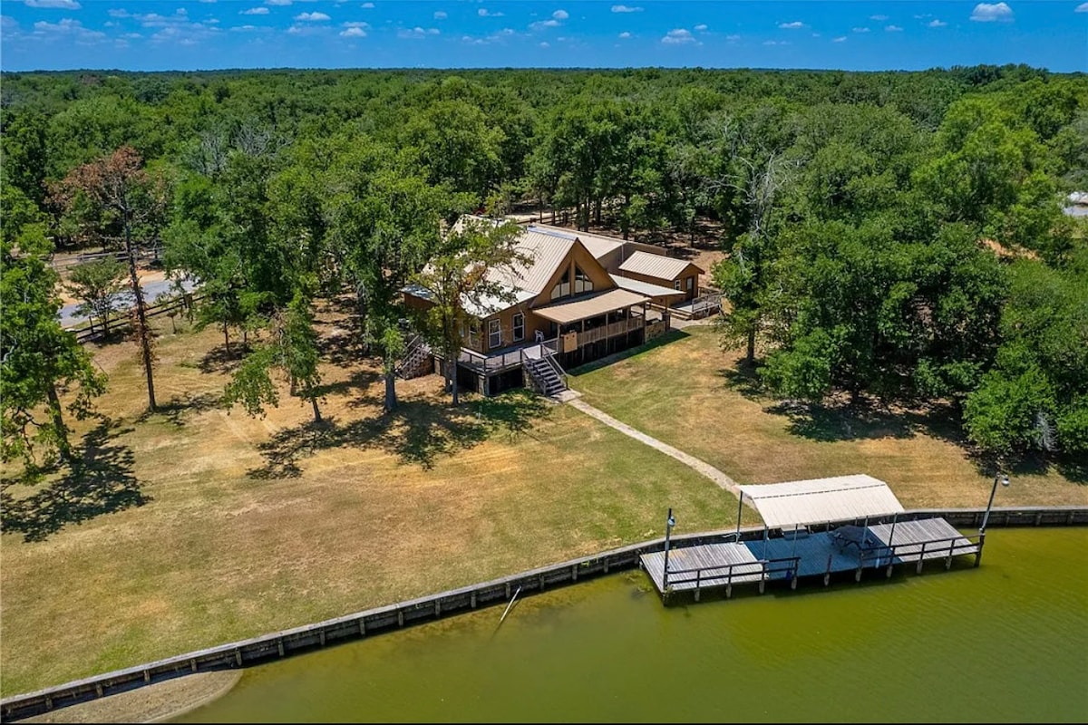 Relax with the whole family at this peaceful lakeside home. Our beautiful, cozy house on nearly 3 acres on Lake Limestone is the perfect getaway for adults and kids alike! The 3 bedroom home has a king bedroom with an en suite bathroom, a bunk room with 4 beds and a queen bedroom! The large open lot has both a front and back porch. The front porch faces a private playscape and the back deck has magnificent views of the lake, a private dock and firepit! A wonderful escape to the country awaits!