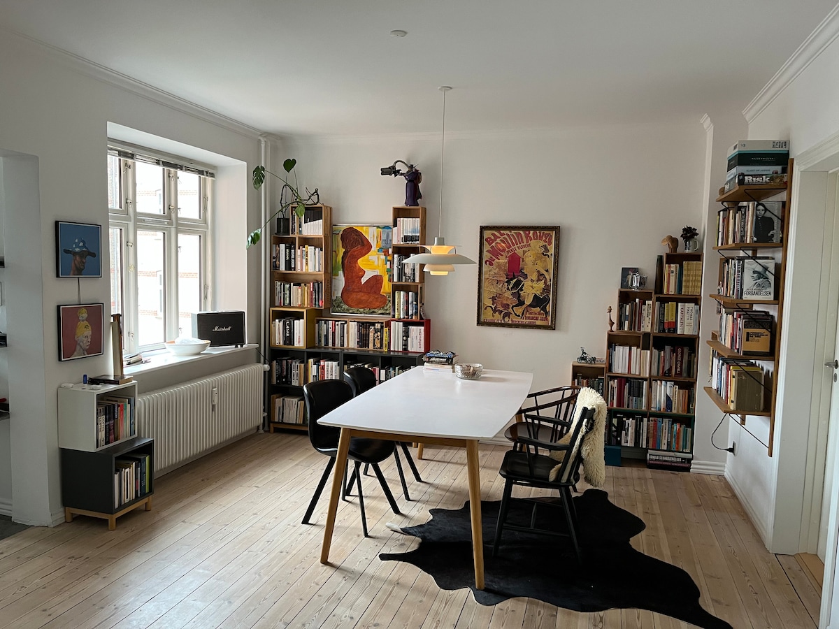 Your family will be close to everything: city, university, forest and beach. Trøjborg is an old and cozy district, which is popular to live in. The best place in the apartment is the balcony with a view of the forest, sea and Aarhus Ø. It is usually sheltered and perfect for sunbathing. The living- and dining room are one large room, so there is plenty of space for several people to be together. On the 1st floor we have 1 junior bed, 1 bed, 2 mattresses / a playroom and a workplace with a view.