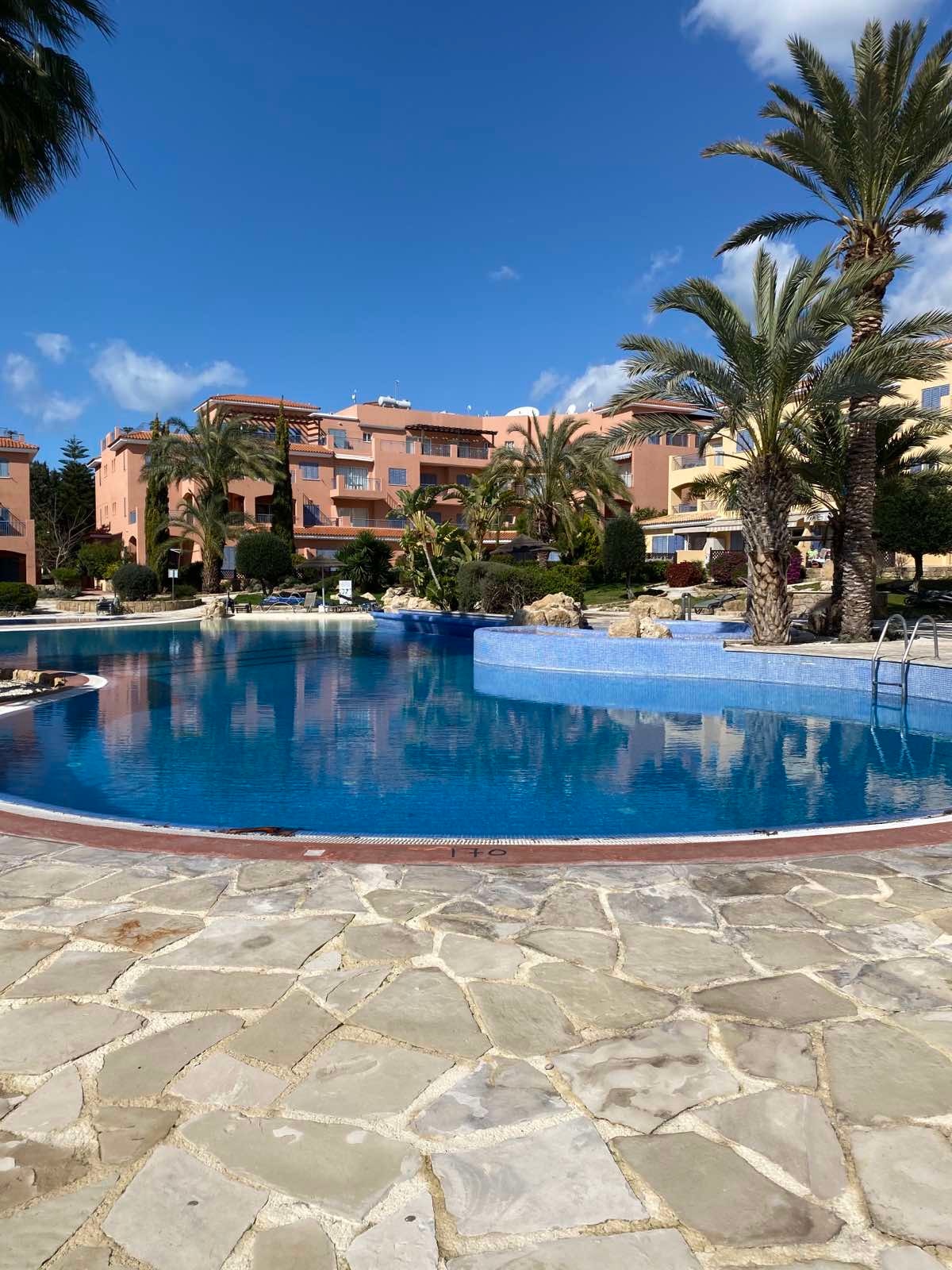 A one bedroom first floor apartment with a poolside balcony and a very private covered terrace situated just a few minutes walk to the seafront and main beach in kato paphos. The apartment is in a small gated complex with a large variety of restaurants, tavernas, bars and shops within a stones throw away. From the apartment the harbour area is an easy 15-20 minute stroll away either along the picturesque coastal path or Poseidonos Avenue passing shops, restaurants and tavernas along the way.