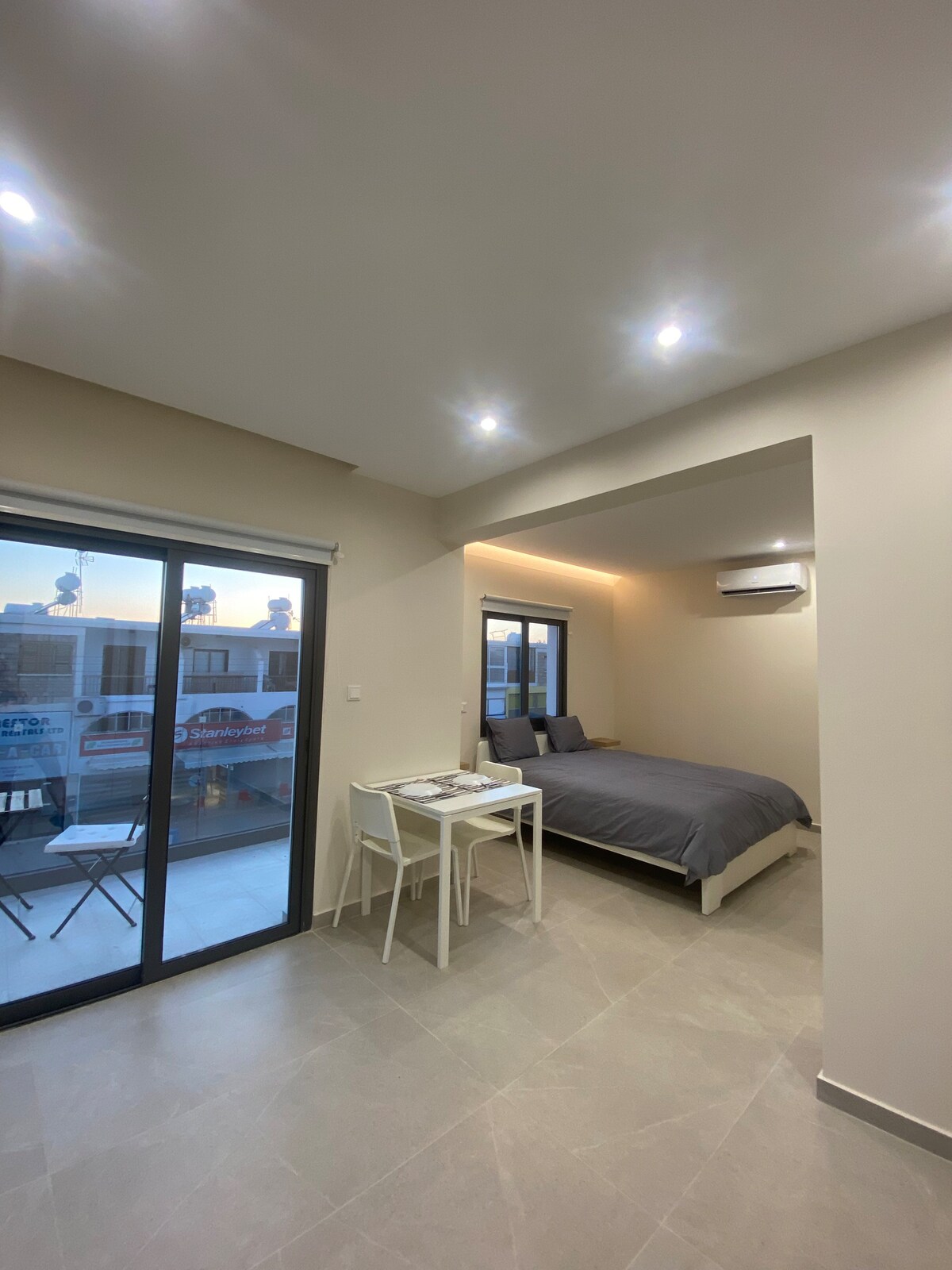 Studio with patio. for 2 persons. size of the room 27 square meters included furnitures & 7 square meters patio. Double bed. Full renovated. Hairdryer _ wifi free internet access _ T.v (flat screen .43 inches). big fridge _ washing machine. ceramic electric cooker coffee machine ....... very strong Aircontition or heater _ ceiling fan _ spoons, knifes,plates are also available