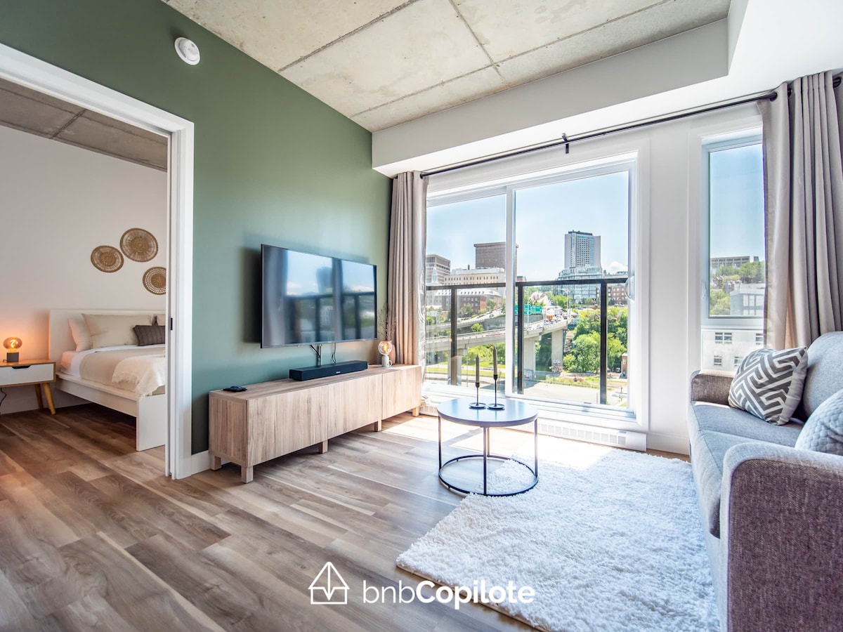 Vivez l'intimité urbaine dans ce condo moderne et spacieux situé au 11e étage. Profitez d'une piscine chauffée sur le toit, d'un espace BBQ et d'un foyer extérieur. Savourez la vue et les couchers de soleil à couper le souffle. Ne manquez pas cette chance exceptionnelle de vivre une expérience inoubliable. CITQ: 311970 Vous voyagez en groupe ? Sachez que nous possédons d'autres unités dans le même bâtiment. Voici les liens pour y accéder. airbnb.fr/h/le1006 airbnb.fr/h/penthousele1108