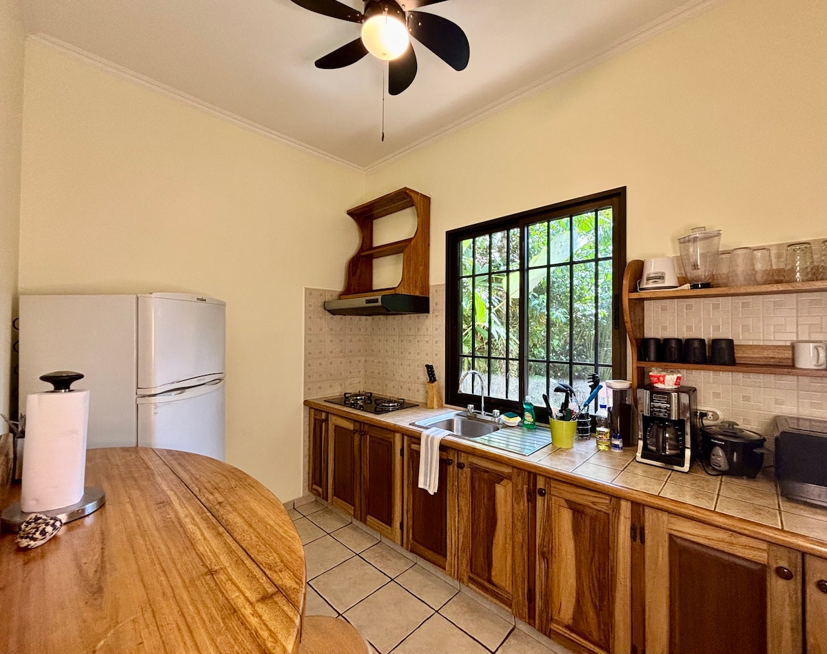Wake to birdsong and the gentle sounds of the jungle in your Caribbean vacation home, just steps from the soft sands of Playa Negra. This cozy retreat features two bedrooms, two en-suite bathrooms, a fully equipped kitchen, and a spacious, beautifully designed veranda. Enjoy high-speed fiber internet and secure parking within a gated property. Surrounded by a tropical garden, experience the authentic spirit of Costa Rica in the most magical way.