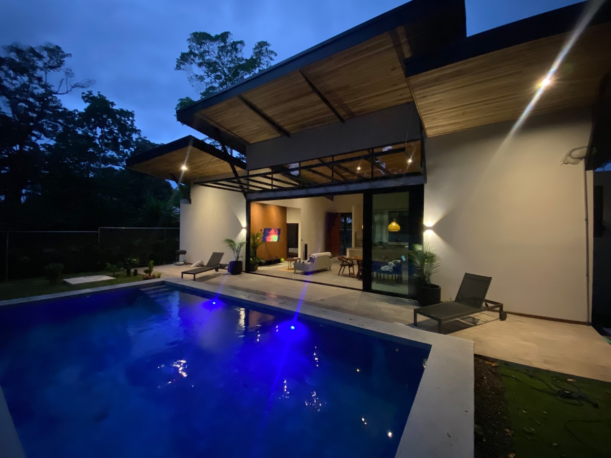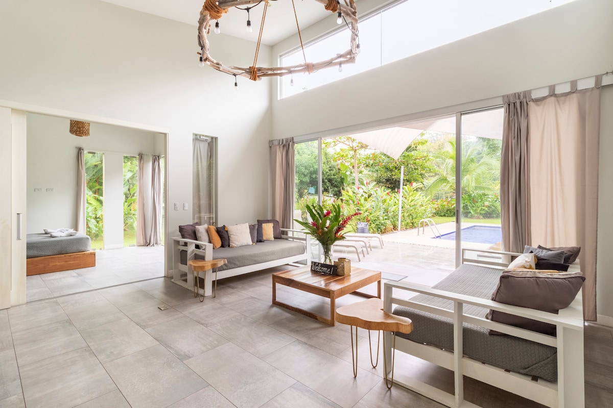 PICKLEBALL, POOL, HOT TUB, WILDLIFE!! On an acre of tropical gardens, ponds and wildlife habitat 300 steps to the beach.  You will hear wildlife throughout your stay. A habitat where people and animals can co-exist. Whether a romantic getaway, your family vacation, or a friend-group, the 3 bed, 3 bath will accommodate 2-9 persons in jungle-style luxury.  Regardless of the size of your group, we rent to only one party at a time, assuring you a place to kick back and get that pura vida going!