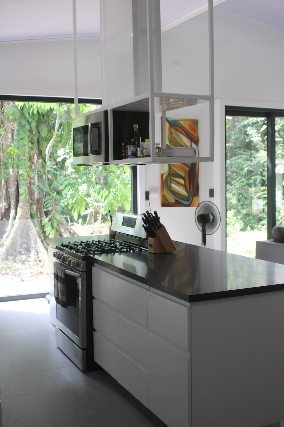 If chic modernism is more your style, we welcome you to discover our newly built homes, each discretely nestled alongside Cahuita National Park and with a private pool all to yourself. These beautifully designed 2 bedroom (both with ensuite bathrooms) homes, comfortably sleep 6. We invite you to enjoy the american style kitchen/living whilst relaxing in the cool air-conditioned spaces and soaking in the uninterrupted views of the forest and deliciously tropical gardens.