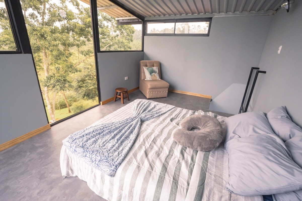 Imagina despertar con el canto de las aves. Nuestra cabaña es un refugio privado para vos y tu persona favorita, donde puedes iniciar tu día decidiendo entre un café en la terraza o la calidez de tu pileta privada, siempre con vistas panorámicas al Volcán Turrialba. Este acogedor estudio, ideal para parejas, invita a reconectar. Aunque el entorno te llama a la desconexión, tienes cocina completa, TV y WiFi para tu comodidad. Es tu base para recargar energías en una experiencia auténtica.