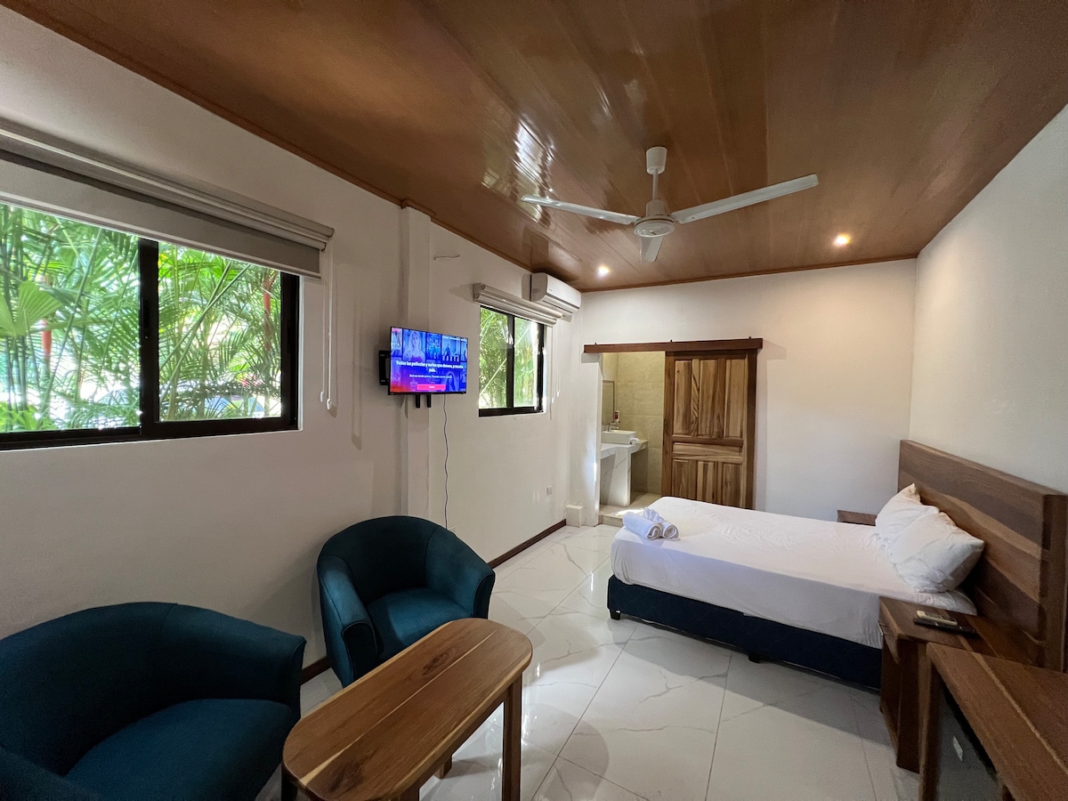 Key Features of Hotel Por Que No?: 🌟 13 minute walk to Marino Ballena National Park (Whale Tail Beach) 🌟 Private room and bathroom 🌟 Queen bed 🌟 Pool with lounge chairs (shared) 🌟 Fully stocked outdoor kitchen (shared) 🌟 Air Conditioning 🌟 Free Parking on premises 🌟 Fast Internet 🌟 Washer + Dryer (small fee) 🌟 13 minute walk to the best restaurant in town (ask us which one it is)