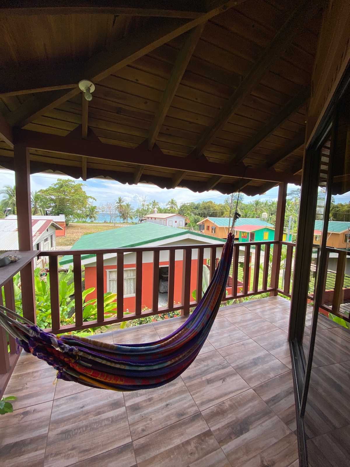 Villas Mar Adentro is located REALLY in front of the sea, in Play Negra beach, enjoy the garden and beach, completely equipped, bedroom A/C in a quiet and beautiful place near Puerto Viejo Downtown. Ideal for relax looking the waves and enjoying the tropical breeze of the Caribbean on the hammock. You will always have the attention of the host for whatever you need. Second Floor Apartment. Fenced garden, laundry and bicycles available Check availability of the first floor