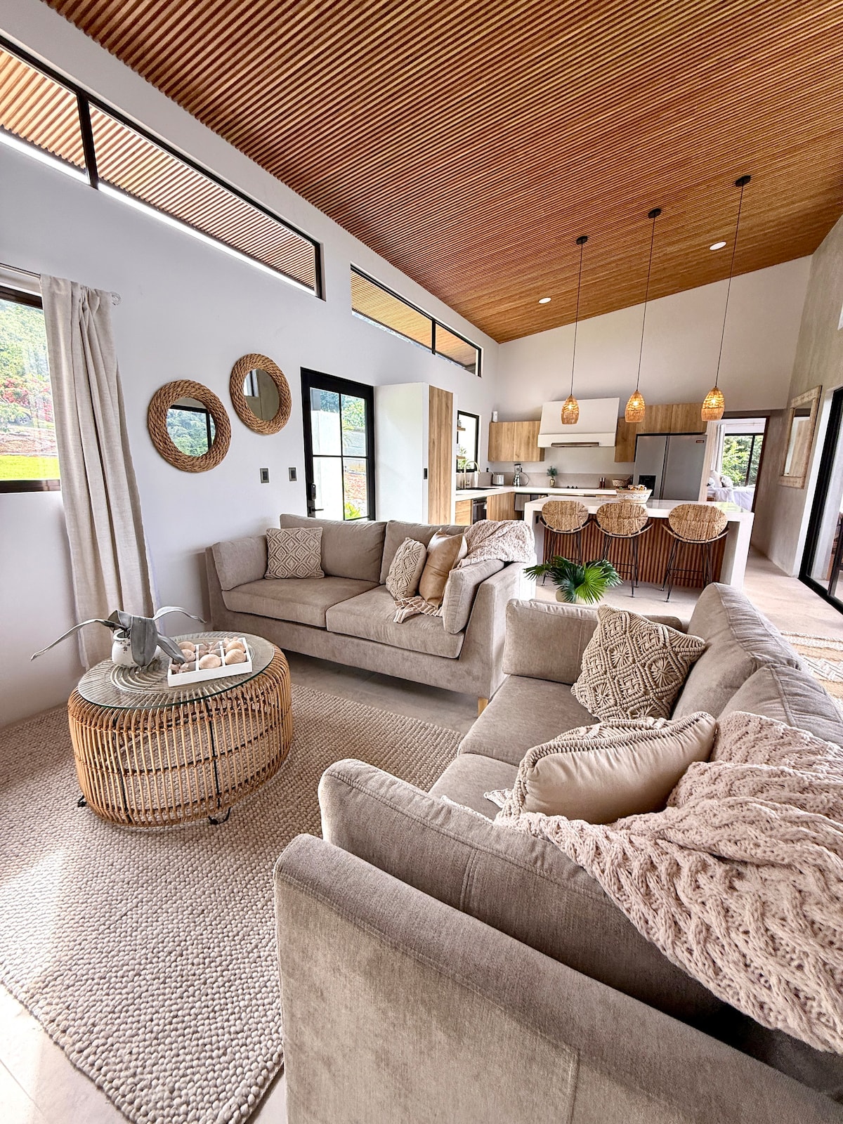 The Suave Vida Getaway Guesthouse offers you its openness with window walls and valley views surrounded in Costa Rican Nature at its purest. You will feel emerged to the views of the valley in a comfortably spacious open space enriched with stylish furniture and décor themed to bring raw elements of nature inside the living area. You will find yourself in tranquility with the sounds of nature and the running streams.