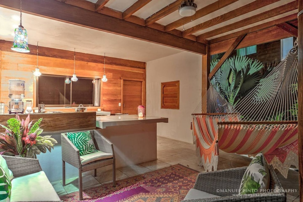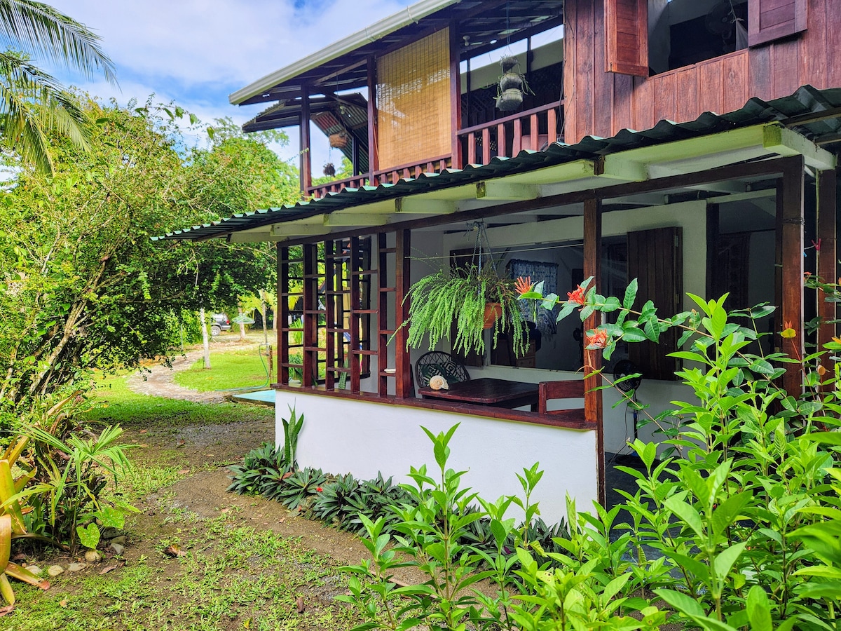 Adults Only Enjoy your coffee watching the sunrise and listen to the jungle wake up. Can be a king or 2 twin beds 2nd floor suite, overlooking the pool, and jungle in the back kitchen area, where you and the monkeys can sit watch each other Central located to surrounding attractions, and an easy 10 minute walk to beautiful Playa Chiquita, and its natural hot tubs in the coral reef There are 2 suites one up & one on the main as well as another house on the property that share the pool