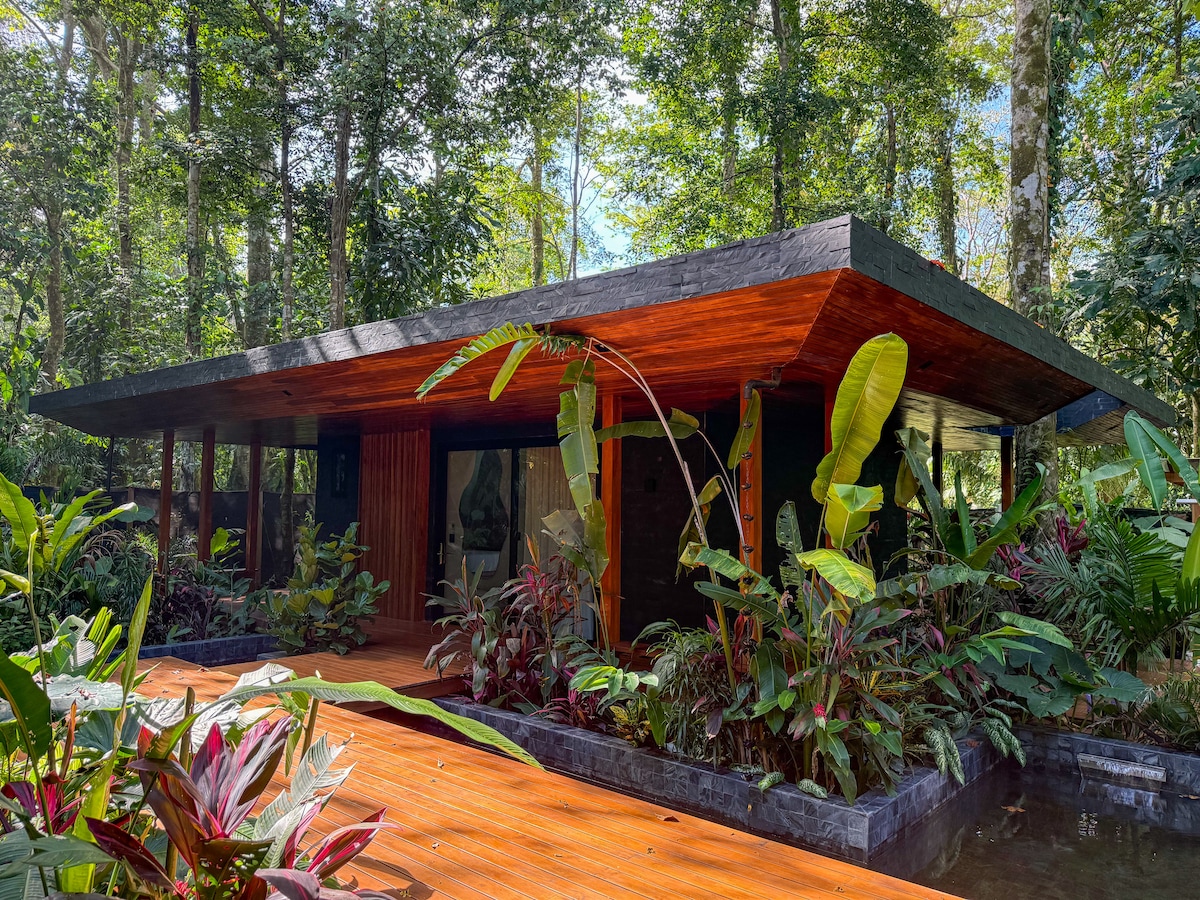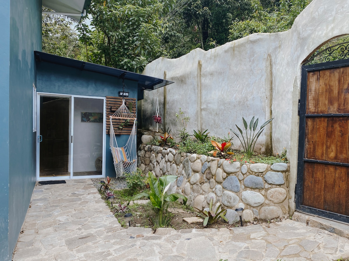 high end studio apartment /w a large deck overlooking the river. nestled in a lush tropical garden, with private river access and several ponds. take a dip or choose the plunge pool instead. great for romantic getaways, birdwatching and relaxing after long hikes! featuring a full kitchen, private parking and high speed internet. close to Chirripó trailhead and Cloudbridge nature reserve, several restaurants and a small supermarket in walking distance