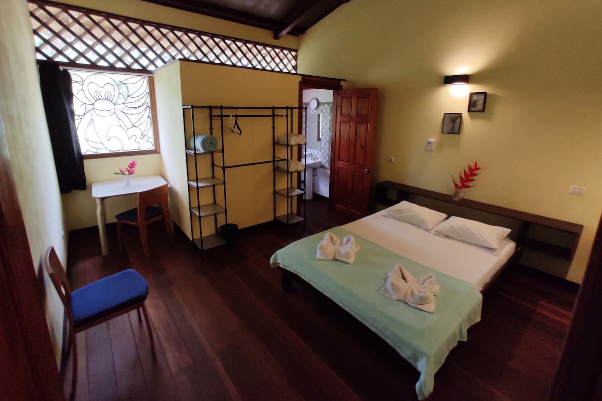 Escape to our private jungle retreat and enjoy complete seclusion and stunning jungle views. Our fully equipped space includes a king-size bed, kitchen, and large hot water shower. Enjoy watching monkeys and birds from the large porch, or take a dip in the pool at sunset. Our onsite owner/caretakers are available, but we value your privacy. 3 cats/3 dogs on the property, so no additional pets allowed. 10 mins to Costa Rica's best beach and 15 to stores/restaurants.