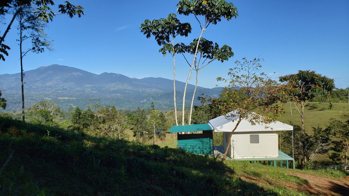 Experience this off-the-grid glamping location in one of the most beautiful farms of the Turrialba region. Great views of the Turrialba volcano, direct access to the Pacuare River known for the best rafting in Costa Rica, a relaxing atmosphere. Ideal for nature and adventure lovers. You will enjoy Finca Tres Equis, a +300 hectares (+800 acres) farm, 2 BBQ ranches, trails, wild nature, and farm animals, plantations, and scenic views. Ideal to relax and enjoy the wilderness and farm experience.