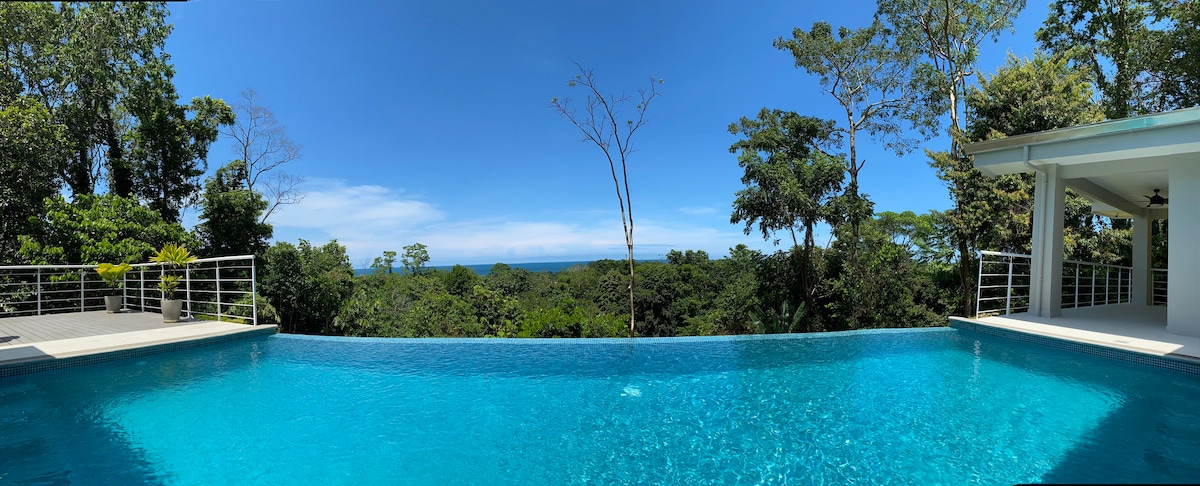 Experience the best location in Dominical, where the rainforest meets the ocean! Enjoy amazing white water views from each & every room. This villa offers a unique combination of spectacular views, easy access from the highway, 2 minutes from the nearest beach & 5 minutes to shops, restaurants & amenities of Dominical, all within a secure gated neighborhood surrounded by lush rainforest. We are located 40 min from Manuel Antonio, 15 min from Marino Ballena, and 3 1/2 hours from SJ Airport.