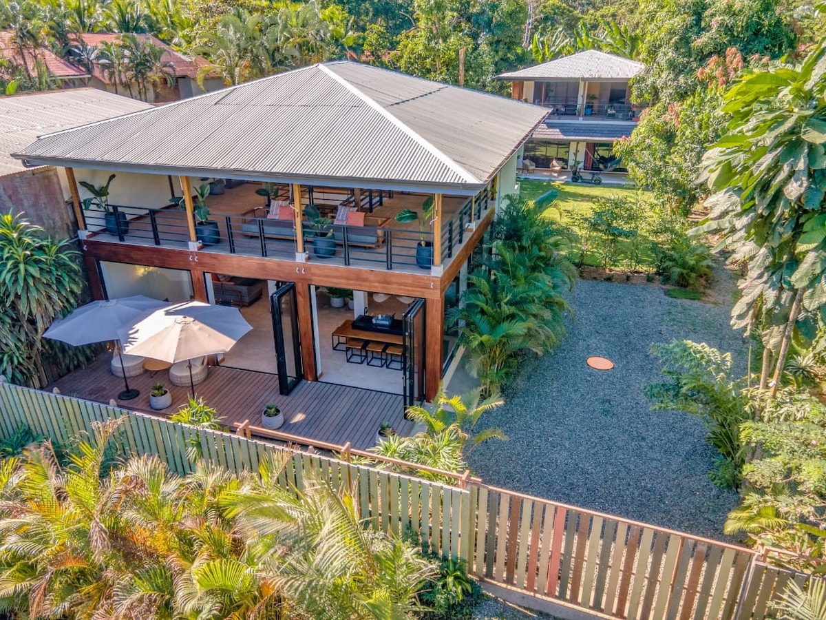 Unplug and unwind in this spacious, serene villa — perfect for families or groups of friends. Enjoy a private tropical setting, open kitchen and living area designed for sharing special moments. Two bedrooms with A/C, ceiling fans, and en-suite bathrooms. Includes fiber-optic WiFi, on-site parking, shared laundry area, and daily bike rentals. Just 500 meters from Playa Negra and minutes from downtown Puerto Viejo. Personalized attention and tailored experiences available.