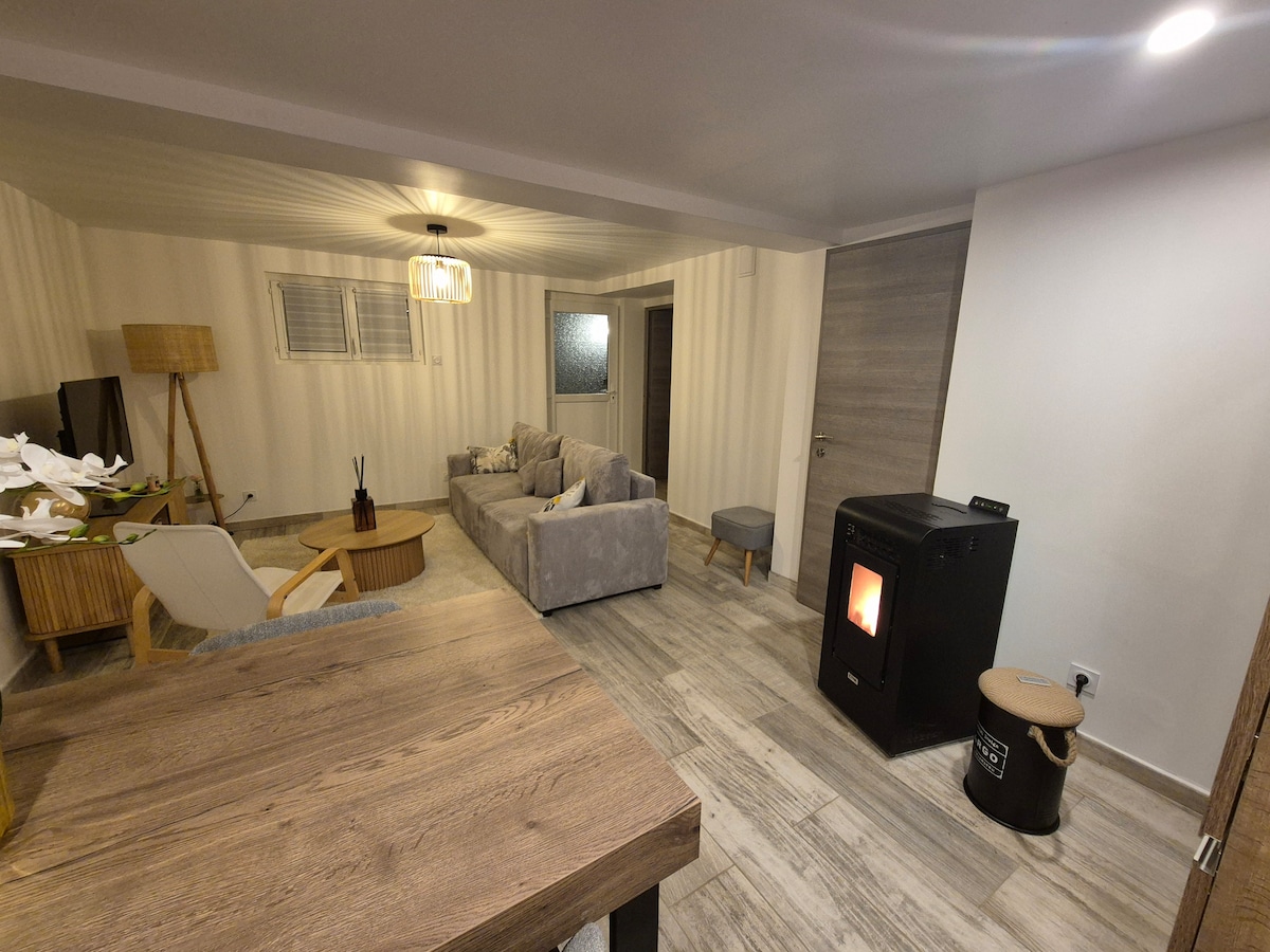 Notre appartement cosy et fonctionnel offre tout le nécessaire pour un sejour confortable. Situé à Champagne au mont d’or aux portes de Lyon,il offre un accès facile au centre ville via les axes autoroutièrs ou les transports en communs situés à 5 minutes de marche. Profitez du parking privé,de l'arrivée autonome,du Wi-Fi fibre,de l'accès à Netflix et d'une cuisine équipée. Chambre séparée,canapé-lit,salle de bains moderne. Parfait pour un sejour détente ou professionnel.