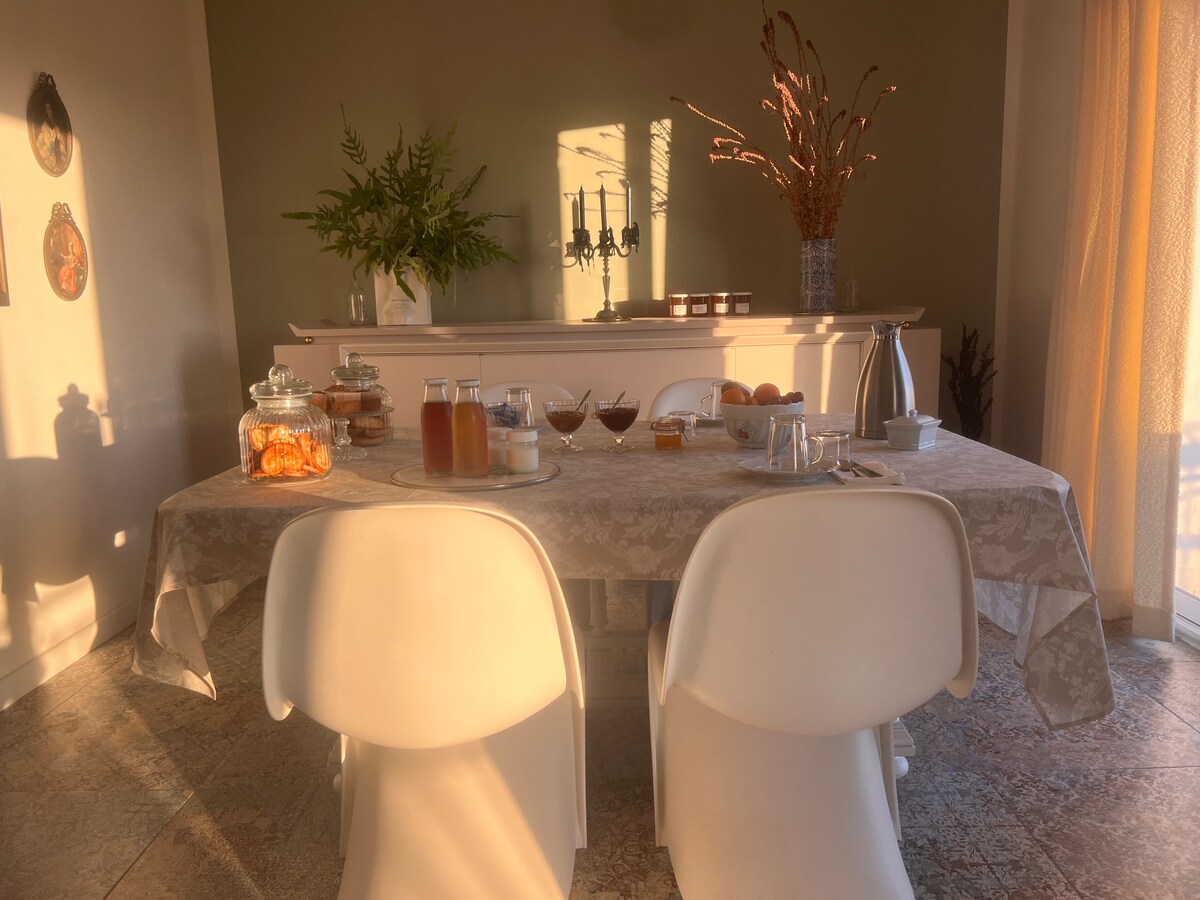 Suite de 2 chambres au rez de chaussée de notre maison, pouvant accueillir 5 personnes , avec entrée indépendante, terrasse ; salle de bain privée. wifi gratuite. Lit parapluie ou chauffeuse (gratuit pour bébé) Petit déjeuner inclus. Plateau de courtoisie. Escaliers intérieurs et extérieurs Parking privé, garage ,préau ( sécurité de vos vélos ou motos) Boite à clé . Animal de compagnie accepté. Location de vélos à proximité.