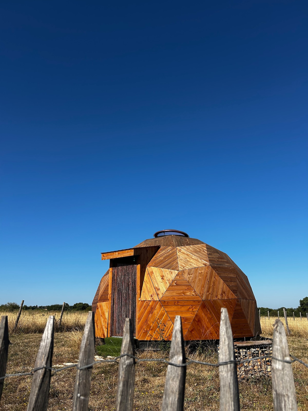 Nous vous proposons un séjour original dans un dôme géodésique niché en pleine nature. Vous serez entourés d’animaux : nos chèvres, un âne,les volailles… sans oublier nos chiens et nos chats .• Petit-déjeuner maison en option (7€/personne) • Lit parapluie mis à disposition (sur réservation). • Activités à la ferme en saison : si vous le souhaitez, participez à la traite des chèvres et découvrez la fabrication de fromage. Une belle occasion de partager un moment convivial et authentique