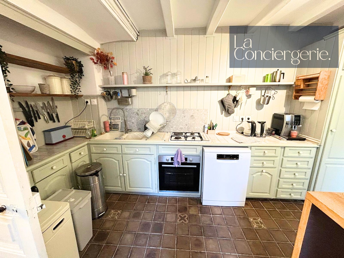 Studio room No. 6 located on the second floor in the attic by the Creuse river. It is decorated in a contemporary style and furnished with designer furniture. The floor is oak parquet, with thick carpet in the bedroom. It includes a kitchenette (fully equipped with a dishwasher, oven, fridge, dishes, etc. ), a NESPRESSO machine, a storage wardrobe, a desk, a dining table, and 2 armchairs, a double bed (160 cm), and two smart TVs (28 and 32 inches) that also allow you to listen to the radio.
