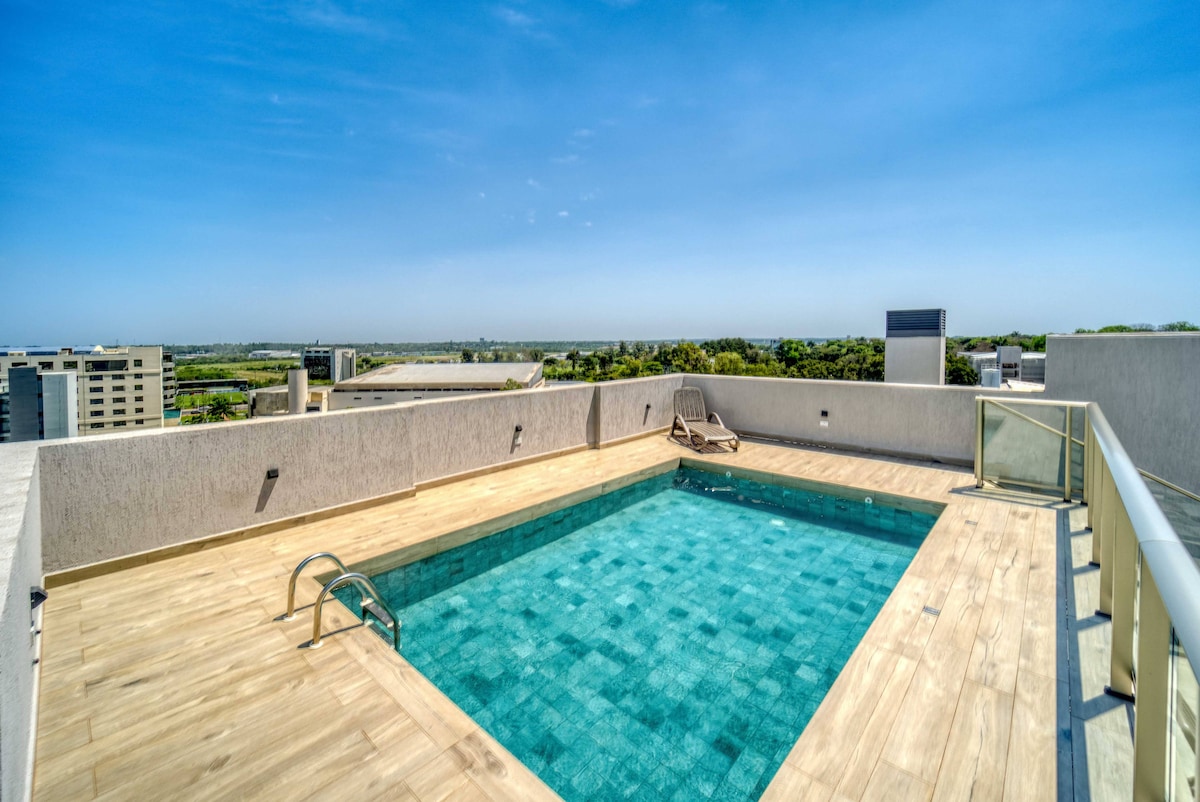 豪华双卧室公寓:城市优雅,带泳池和健身房
