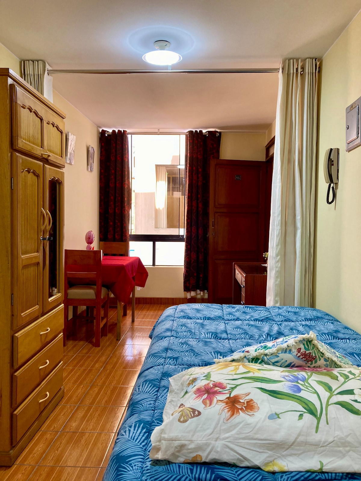 Acogedor minidepartamento propio sin compartir, ubicado en el corazón de Lince, zona comercial cerca de mercados, restaurantes, tiendas y centros comerciales a 3 cdas. de Plaza Vea Risso y 1 cda. del mercado Lobatón. Ubicado en el cuarto piso sin ascensor, cuenta con una amplia habitación, ideal para home office, armario grande, repisas y Smart TV de 65" para noches de películas. Cama de 2 plazas muy cómoda. Cocina completa y baño con agua caliente. Además, incluye una terraza privada.