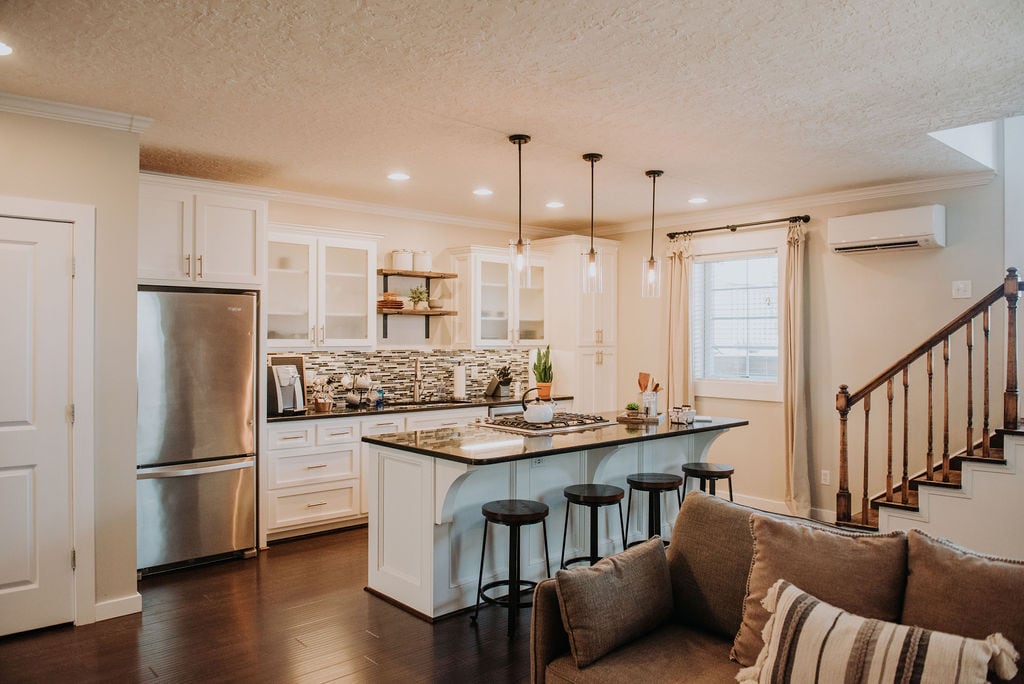 Whether you are traveling for business, an adventure traveler or just looking for a weekend getaway, the Loft has everything you are looking for. The Loft features: • a fully equipped kitchen • a comfortable cozy living room with a 55" Smart TV • a Queen size bed featuring a Puffy brand mattress • a Master shower with a multi-directional spray heads and the ultimate rain shower showerhead • and the ultimate private Rooftop deck complete with outdoor table, sitting and firepit.
