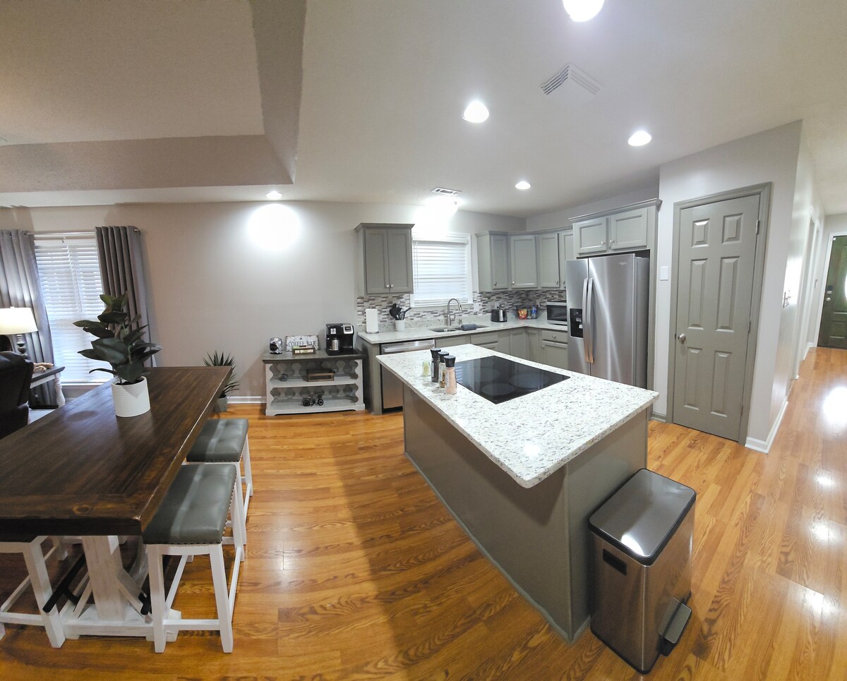 Patio home centrally located minutes from McClellan, Michael Tucker Park -Chief Ladiga Trail Head, Anniston Regional Fire Training Facility, JSU, City of Oxford, Kemet studio, bike riding, and horse trails. This updated ranch offers all of the comforts of home and features a 1-car garage with a Nema 10-30 for EV charging, 2 bedrooms with 1 king and 1 queen bed, 2 bathrooms, private backyard with BBQ grill and seating, high speed internet with workstations, and full kitchen with coffee station.