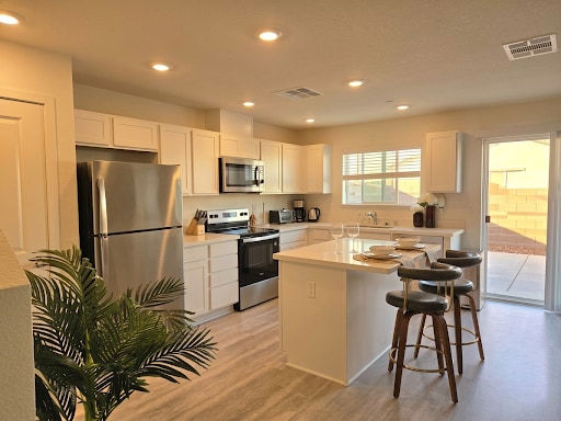 *Walking distance to Vernon street shops & restaurants * 2 Bedrooms each with a queen bed and reading chair *Stocked kitchen -Including a Keurig and induction stovetop with cookware *Cozy living room -Smart options on flatscreen TV -Washable sofa covers *Workspace -Desk, Mac computer and charging station *Laundry room with extra counter space, sink & mirror *Picnic like setting in the front yard *Some cabinets and a storage room are locked from guest use. Storage room has locked windows.