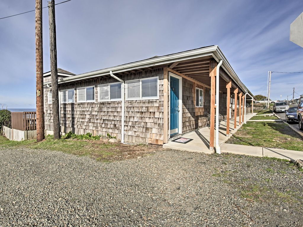 Warm ocean breezes and the steady rhythm of the surf set the tone at this oceanfront studio, made for quiet coastal escapes and cozy winter stays. Relax indoors or soak under the open sky with the waves just beyond the deck. - Sleeps 2 | Studio | 1 bed | 1 bath - Oceanfront corner unit w/ extra windows - Private hot tub on oceanfront deck (year-round) - Electric fireplace & Smart TV(s) - Full kitchen & in-unit washer/dryer - Private beach access, single-level home