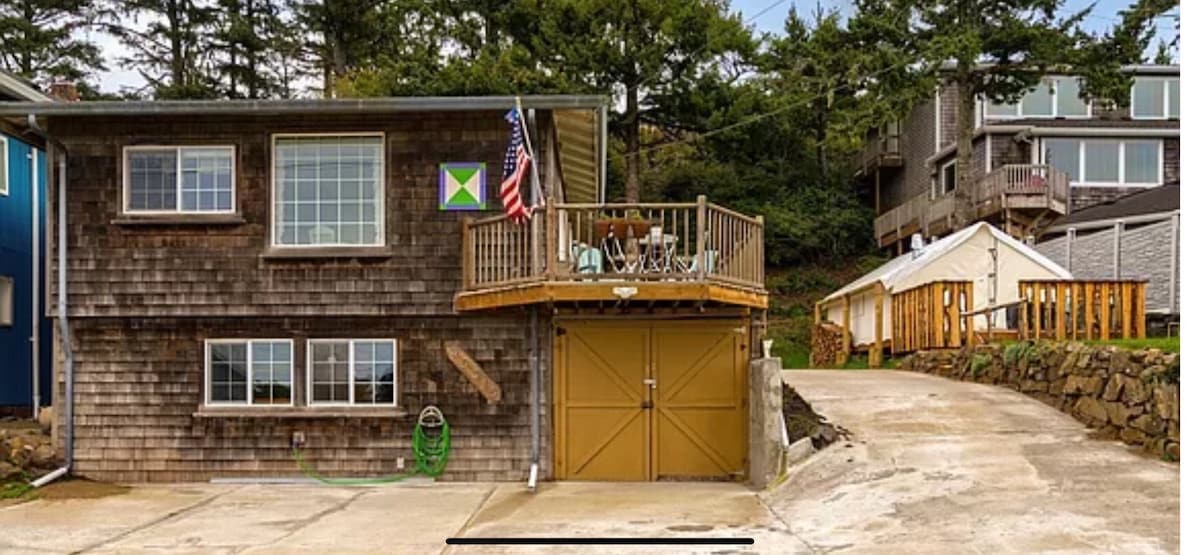 One level Oceanfront bungalow with spectacular views from the wall of double slider doors. Enjoy the ocean sights and sounds from this updated 2 bedroom, 1 bath home. Wood burning fireplace, washer and dryer and propane BBQ. Pets are welcome with a $50 fee and prior approval. We are a fully licensed rental and in compliance with local regulations. Nightly rate includes the 12% Lincoln County lodging tax. Airbnb collects the 2% state lodging tax