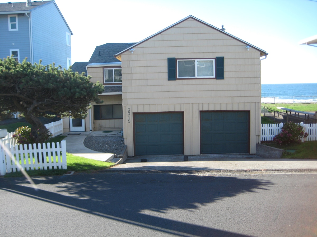 Come to the beach, not a cliff. This is one of the few places in Lincoln City you are actually on the beach not on a cliff. You are full of options here on fun things to do or just sit and relax. Whether it is watching the whales from the hot tub, enjoying the sunset from the fire pit or joining the endless surfers you will always have a memory to take home with you. The home is 2095 sq. ft; upstairs is a large master bedroom, with a small office area with a desk and HP printer.