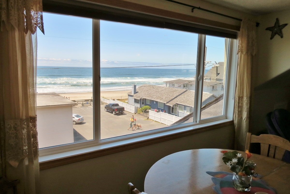 Enjoy direct beach access and stunning bay views at this beautifully designed, ground level 1 bedroom condo that sleeps 4. Spectacular views of the Siletz Bay and beach access just steps away from your back door - all within walking distance to various restaurants and shops! Ideal for families and couples looking to enjoy time on the sand or try out local restaurants and shopping. If you’re searching for a clean, relaxing stay in Lincoln City with a great view, then look no further!!!!