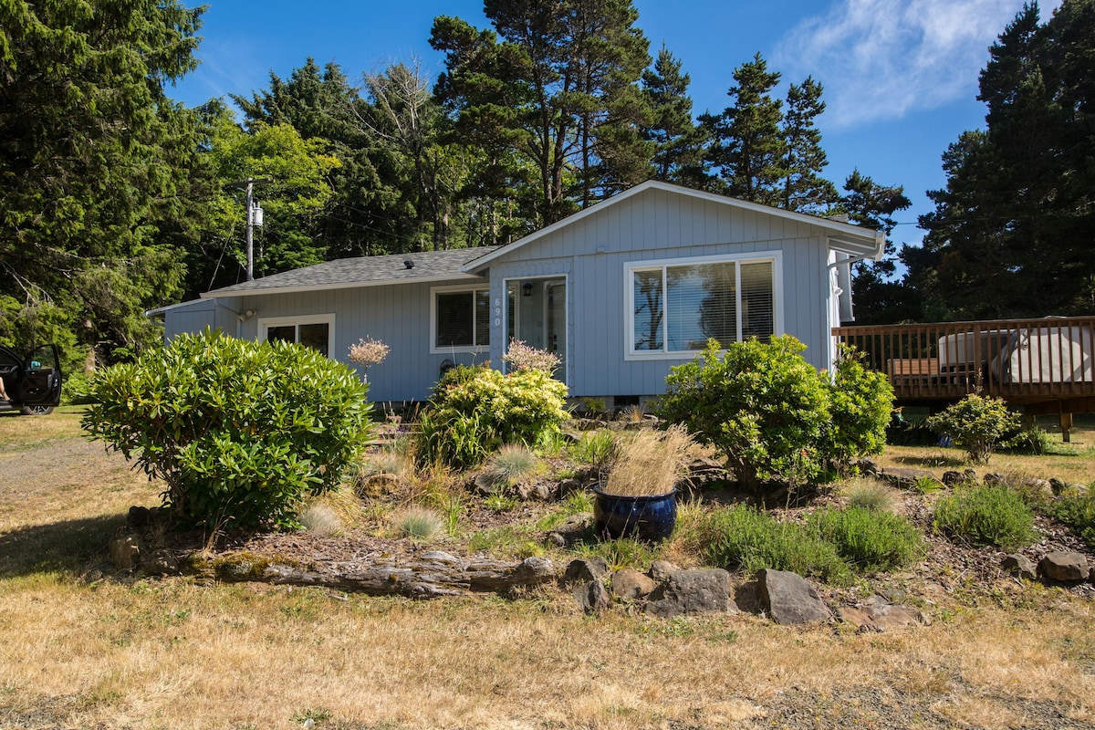 Welcome to our cozy cottage! We would be happy to invite you into our home! It sits on the Siletz Bay and looks out onto the water and Salishan Spit. From the backyard, you will see eagles, osprey, otters, and the occasional seal. Chill out by the fire pit overlooking the water, or take a soak in the hot tub and star gaze! There is no light pollution, so on a clear night, frequent shooting stars can be seen! Feel free to say hello to our Kitty, Coco! She may be around hanging out.