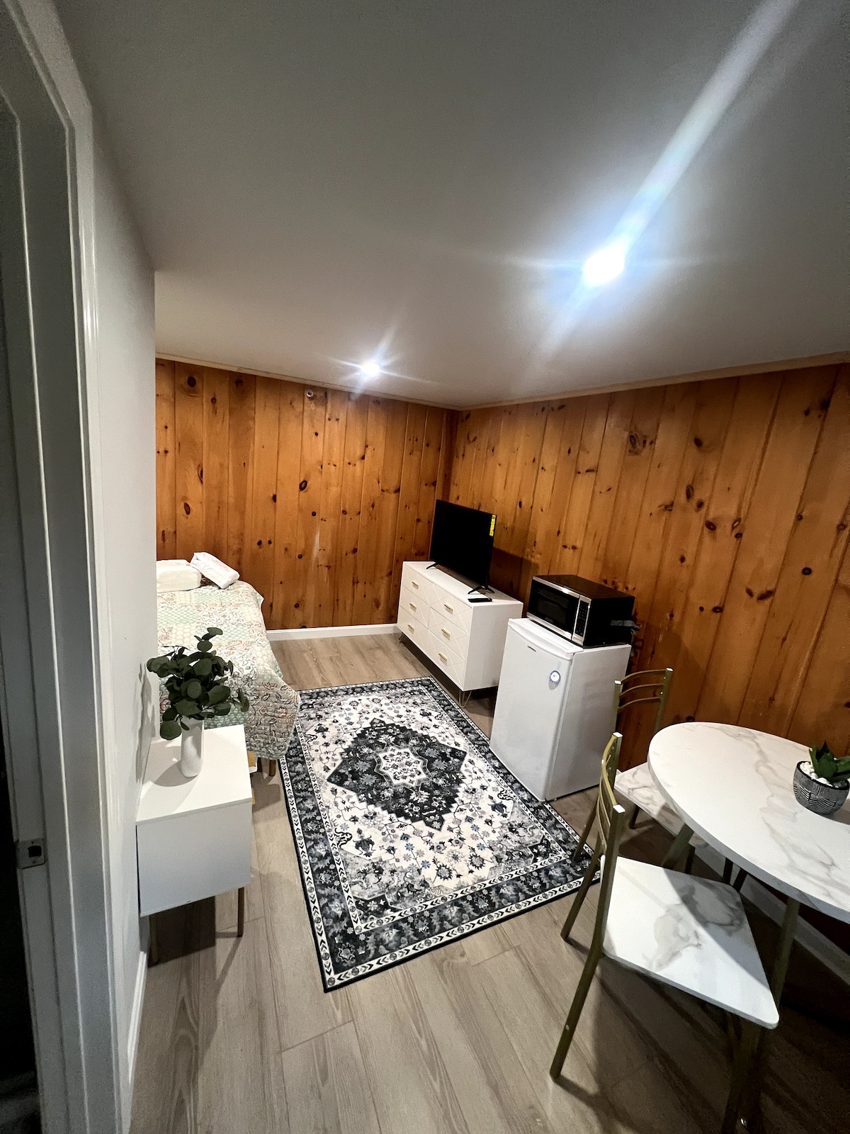 Escape to Room 5 at the historic Greenleaf Inn, a waterfront retreat in Boothbay Harbor. This renovated room comfortably fits 2 with a king bed and private bath. Enjoy stunning harbor views from the shared Sky Deck, a cozy fireplace, and a full kitchen. Perfectly located, you're just a short walk from downtown shops and restaurants. A blend of historic charm and modern comfort awaits you.