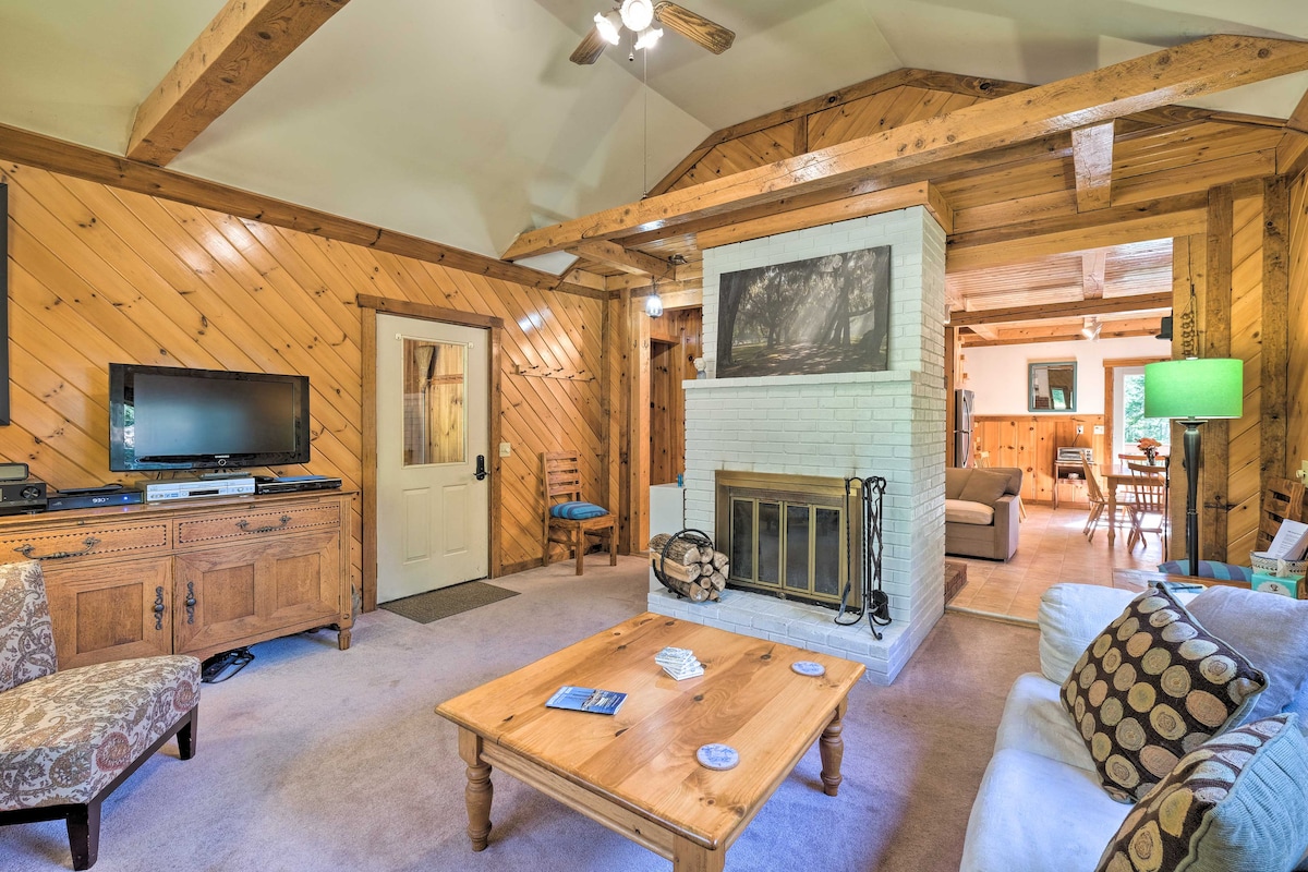 Our newly built, modern cabin offers a secluded and relaxing retreat in Union, Maine. With the high ceilings, open floor plan, and many windows, guests are surrounded by natural light and forest views. The cabin has a fully equipped kitchen, a cozy fireplace, and an outdoor grill and fire pit. Walking trails connect the cabin to our farm next door, where you can visit with our horses, donkeys, goats, chickens, and ducks. We are just 25 minutes from the Midcoast's shops, restaurants, and beaches.