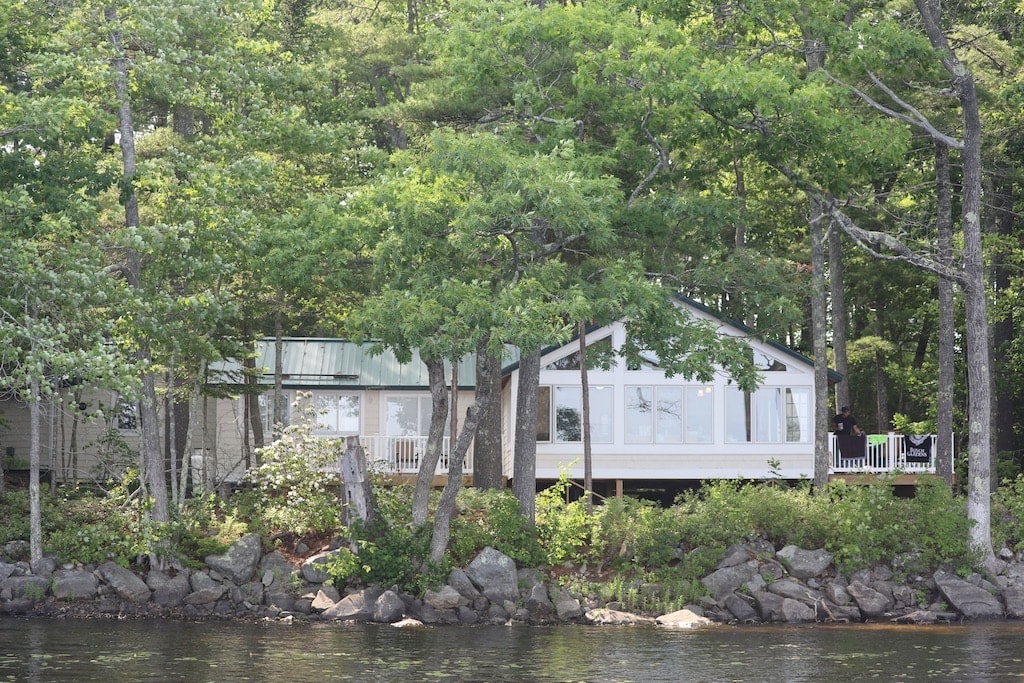 This is where you want to stay! Away from all the traffic and noise of HWY 1, down a long driveway but super close to the village. Perched on the hillside with elevated panoramic views of the river and Wiscasset Harbor. This adorable little building is post and beam construction - comfy, quiet, peaceful on 34 acres of woodlands and river front. Want to squeeze in more kids? Talk to us. 2 quiet nonaggressive furry friends welcome.