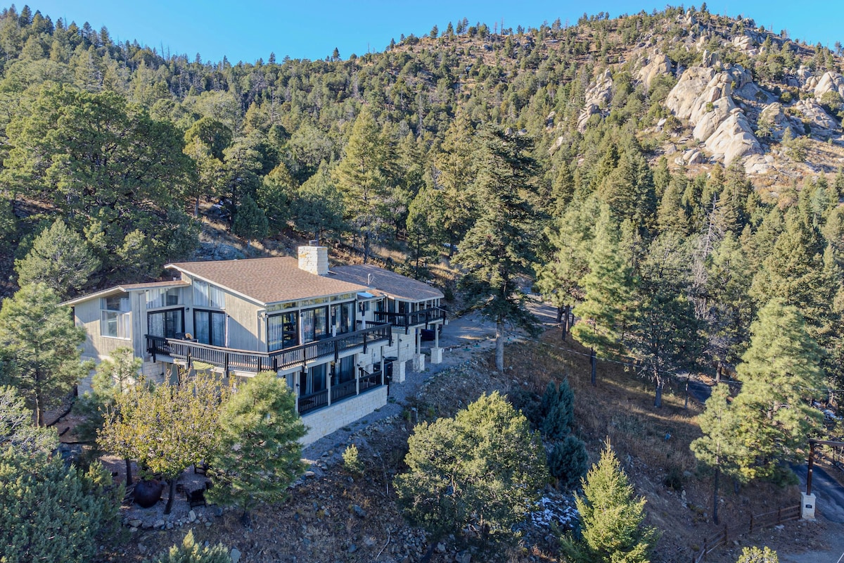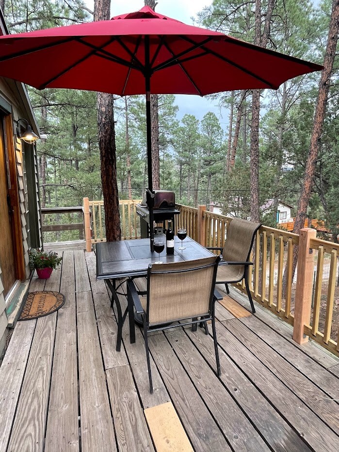 Lassie's Lodge - Great views and a Hot Tub! Our backyard is the Lincoln National Forest. Enjoy the fresh mountain air from a large wrap around deck. The deck has 3 latching gates for your 4 legged friends!