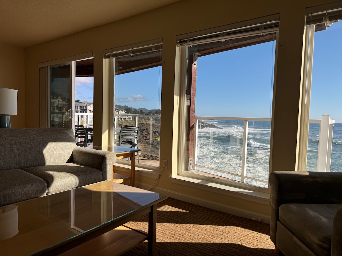 Welcome to Little Bit of Heaven! Experience this oceanfront one-bedroom two-bath condo where you can: + Enjoy stunning views of the ocean and watch the whales as they migrate + Walk on the beach, with personal beach access right outside the back door + Soak in the hot tub, swim in the pool in the summer months + Stroll to shops, restaurants and pubs + Feast in the fully stocked kitchen + Play games or work on a puzzle at the dining table + Work from Home with 300 mbps unlimited wifi