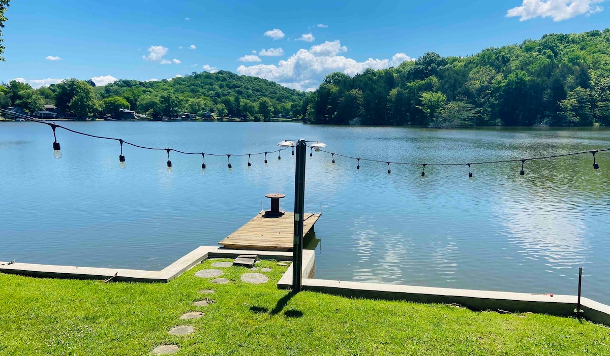 杰克丹尼尔附近的宁静湖滨小木屋和码头