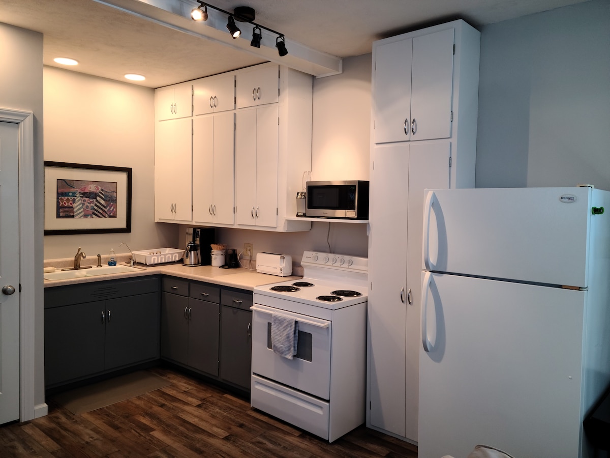 Enjoy a clean and stylish experience in the Juni Suite. Cook all your meals in the well equipped kitchenette, soak it up in the deep bathtub, and stay warm by the fireplace. A queen size memory foam bed and blackout roller shades will help you sleep soundly. The convertible sofa is easy to expand to a full size. Protect your vehicle in the off-street covered parking stall which is only a short walk to the entrance (7 stairs up and 13 down). Close to Union College/Shops.