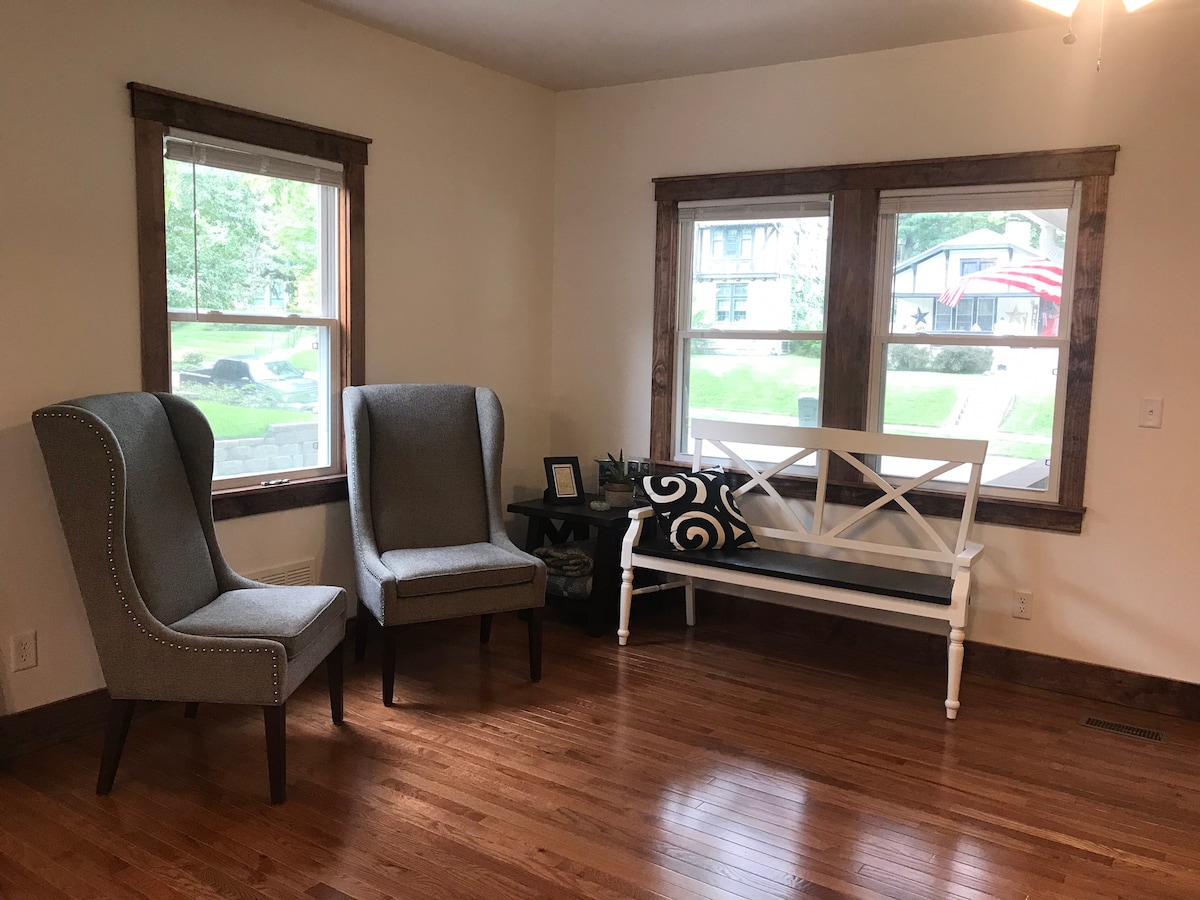 Our home is located in the historic Near South Neighborhood with tree lined streets and wonderful neighbors. Lots of windows, a queen bed and private access to a full bath. Near parks, the Lincoln Zoo, UNL, the Sunken Gardens, Russ' Market, and the Lincoln StarTran bus line, all within walking distance. Downtown Lincoln is 1.5 miles, the Haymarket less than 2 miles, and Memorial Stadium 2.1 miles away. It's a great location; reach any part of Lincoln by car in 15 min.