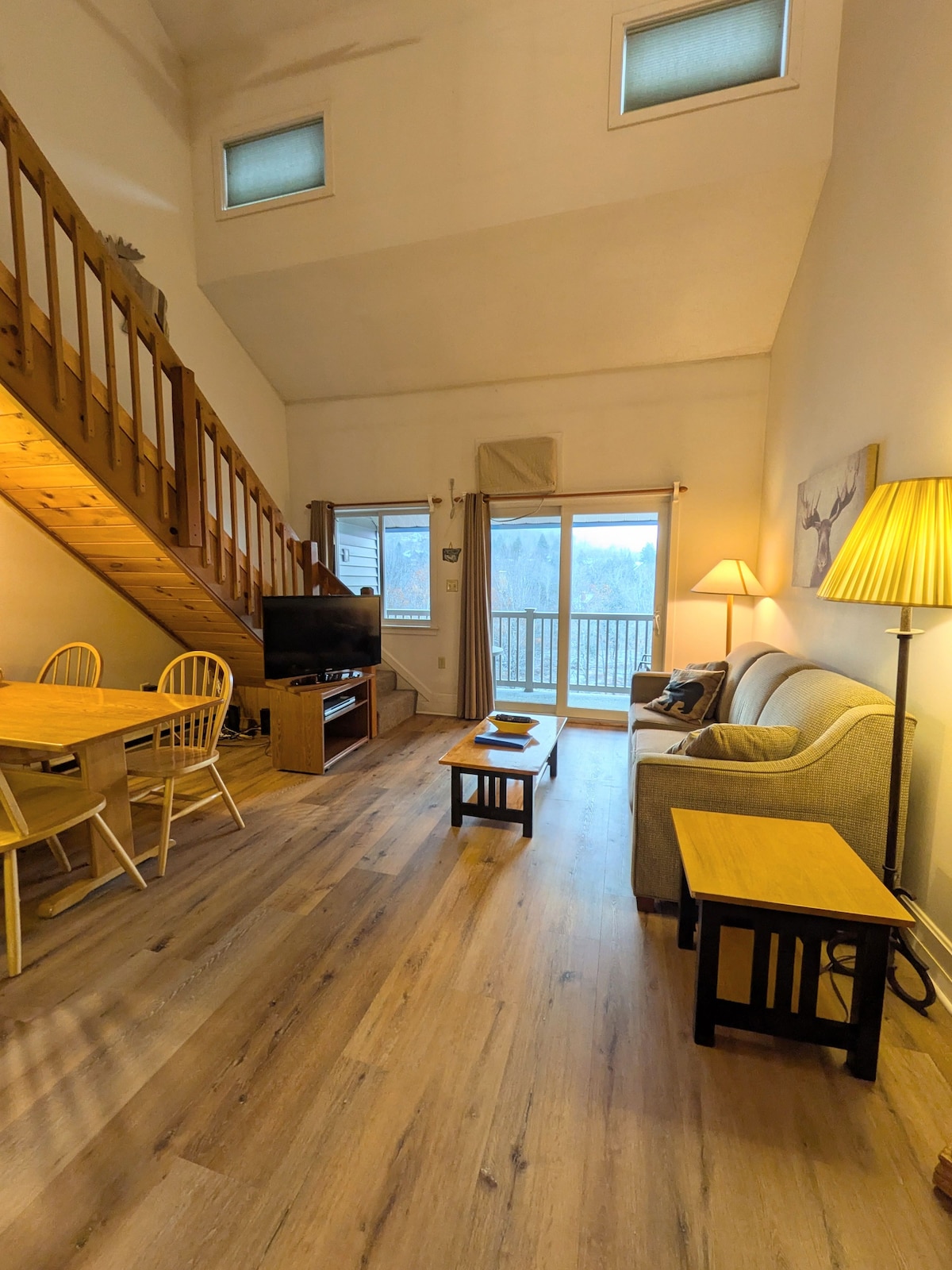 Be inspired as you relax to the sound of the Pemigewasset River Flowing by. Enjoy your favorite beverage on our balcony as you gaze at the gorgeous Loon Mountain. Cozy Studio Apartment is nested at the base of Loon Mountain South Peak Ski trails! Central to all that Lincoln has to offer! Walking distance to fantastic restaurants and pubs. Minutes to Loon Ski Resort, The Flume Gorge, Lost River, Clarkes Trading Post, Franconia Notch, Ice Castles and More!