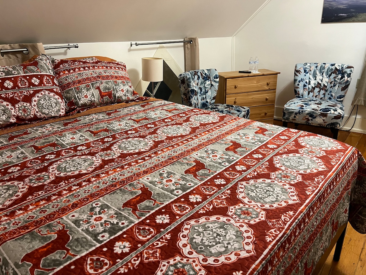 🛏️ Riverside Comfort Charming room with a queen bed and peaceful river views, perfect for up to 2 guests seeking a calming retreat 🌊 Relax and Unwind Enjoy the gentle sounds and sights of the river right outside your window. A cozy space to slow down and recharge 📍 Nature at Your Doorstep Ideal for quiet escapes, morning coffee with a view, or unwinding after a day of adventure
