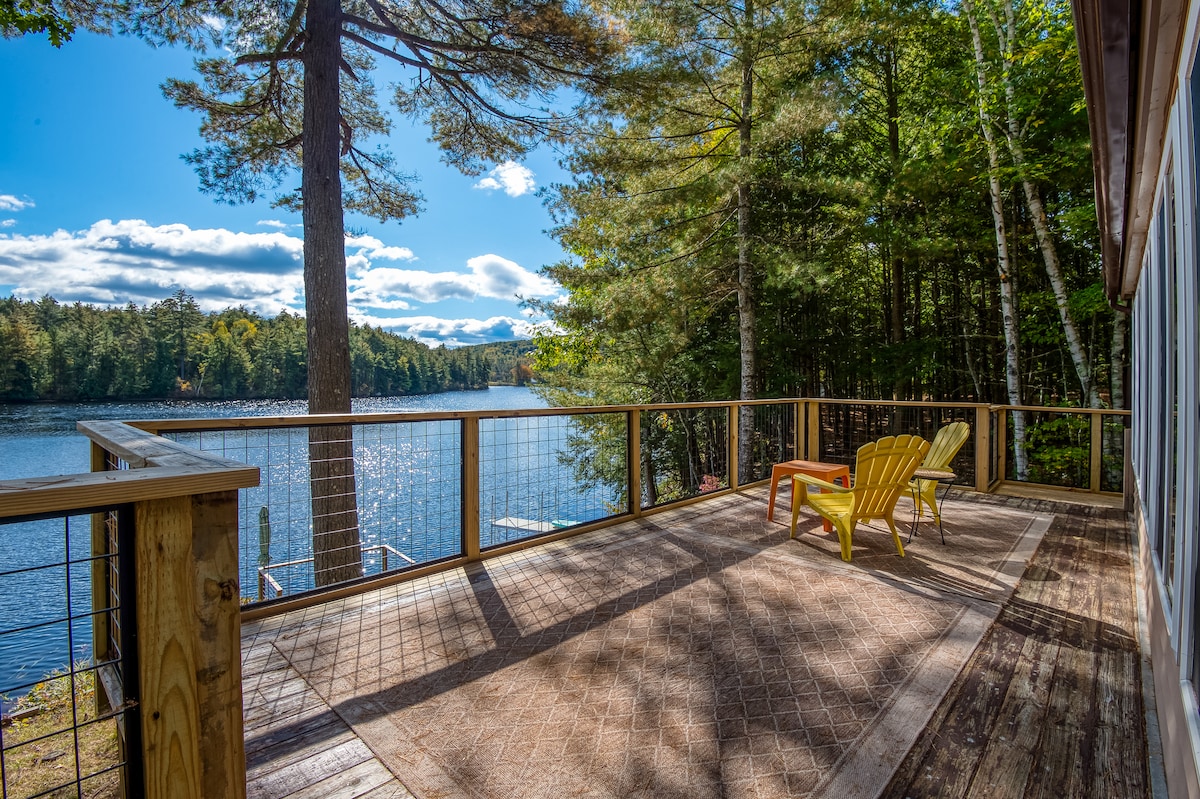 Unwind in the White Mountains at a serene cottage on Mirror Lake. The 2 bedroom (King and Queen Suites+ loft is the only 2 bedroom cabin available on the Lake to rent Hiking, Skiing, snowmobile, great food and scenery, breweries so close- make memories to last a lifetime. New comfy memory foam beds, black out shades, high speed WiFi, 2 Smart TVs+ Sonos, stand up work desk. 25 min Cannon/Loon/Franconia notch/Mt. Washington cog, 18 min Bretton Woods, 12 min Littleton, 12 min Santa’s Village.